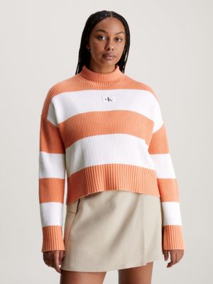 Calvin Klein Jeans Label Chunky Sweater Ivory Tropical Orange in Very well made.